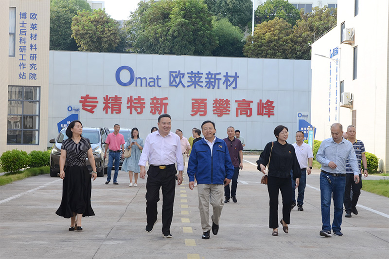 陈刚一行实地参观了欧莱新材展厅、材料研究院,欧莱新材董事长文宏福详细介绍了欧莱新材的发展历程、经营理念、研发成果。陈刚副秘书长对欧莱新材取得的经营成就表示赞赏,鼓励欧莱新材要充分发挥党员的先锋模范带头作用 、促进企业高质量发展,走专精特新之路。